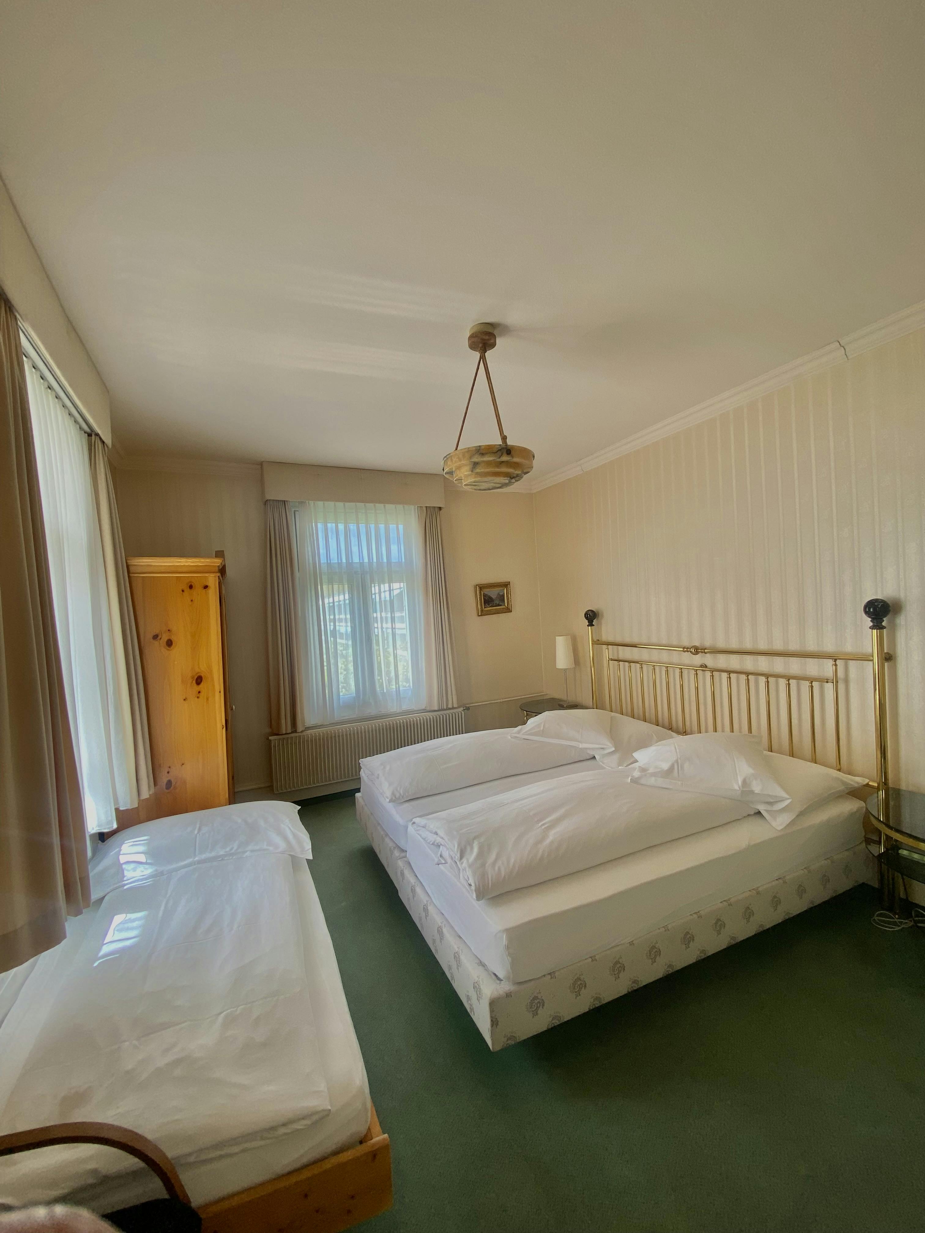 Alle unsere Dreibettzimmer verfügen über Bad/Dusche/WC, Flatscreen-TV, Telefon, Haartrockner, Wasserkocher und Tischventilator. 2 Zimmer sind mit 1 Doppel- und 1 Einzelbett ausgestattet. 1 Zimmer davon hat 3 Einzelbetten.