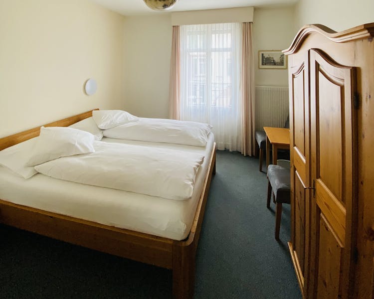 Hotel de la paix significa "hotel de la paz" y eso es exactamente lo que le ofrecemos. Situado en una zona residencial tranquila de la ciudad, nuestro hotel de 3 estrellas de gestión familiar le ofrece tradición y comodidad en un ambiente agradable y relajado. Estamos a solo 3 minutos a pie del centro comercial de Interlaken y de la estación de trenes "Interlaken West". Todos los trenes internacionales / aeroportuarios paran en esta estación. Aquí tiene conexiones para excursiones a las montañas, autobuses a los pueblos de los alrededores, al campo de golf y barcos para el lago Thun. El hotel tiene su propio aparcamiento, importante en Interlaken. También hay un ascensor, una lavandería automática que funciona con monedas y una máquina de hielo. Una característica creciente del de la Paix es la colección de relojes antiguos que adornan los salones y el comedor. Nuestro énfasis está en la atención personalizada: estaremos encantados de ayudarle a planificar su próxima excursión. Somos pequeños y especiales, ¡así que no esperes demasiado para reservar tu habitación!